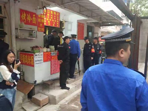2019年下半年以来,学校多次接到群众投诉,称金盆岭校区教师住宅区域多家餐饮门店无证经营、违章搭建,影响校园安全及教职工正常生活。为此,学校保卫处联合金盆岭市场监管所、金盆岭街道办事处、金盆岭街道城管执法中队、金盆岭派出所、赤岭路社区开展校园环境综合治理专项行动,取缔校内无证经营餐饮门店。
