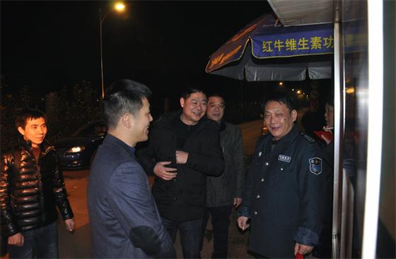 除夕夜,保卫处110、门卫等值班工作人员坚守岗位,校园秩序平稳有序,刘扬一行检查了金盆岭校区和云塘校区安全情况,慰问了校园110值班工作人员和各门岗、执勤点值班工作人员,刘扬代表学校向他们致以节日的问候和新春的祝福,感谢他们守岗尽责,为师生营造一个安全、祥和的节日氛围,并希望他们在新的一年里,再接再厉,取得新的成绩。