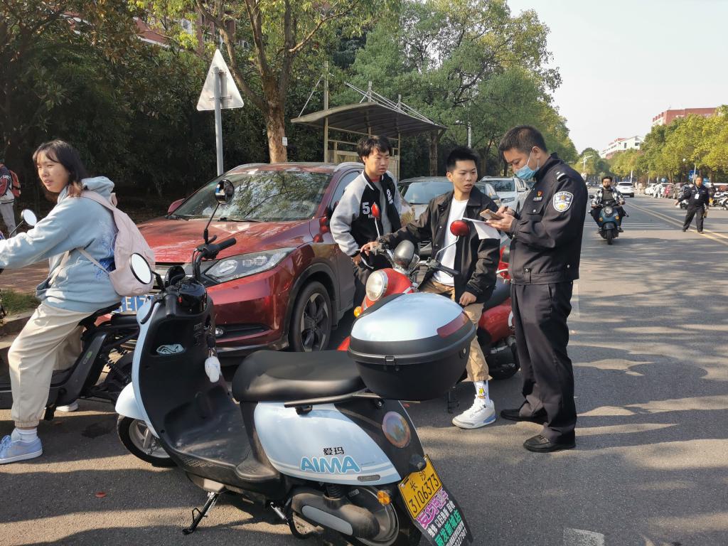 “同学们,驾乘摩托车、电动车一定要佩戴好头盔,提高交通安全意识”,整治行动中,天心区交警大队的警官们和学校保卫处工作人员对违规驾乘的同学进行文明劝导和教育宣传,引导学生学习交通安全知识,做到规范骑乘、安全出行。