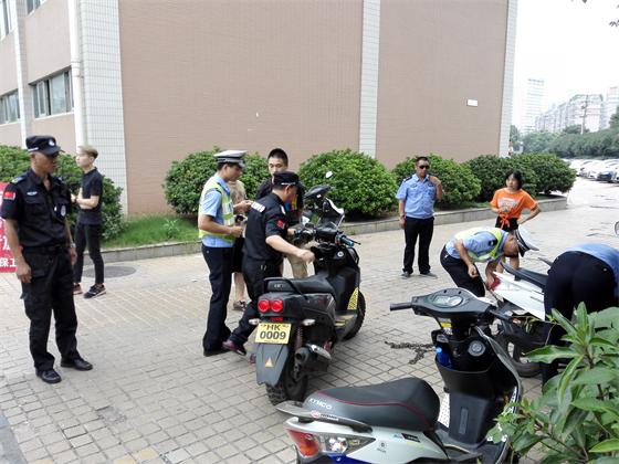 为进一步规范学校交通秩序,保障师生员工出行安全。根据《长沙市城市道路车辆通行若干规定》及《437必赢会员中心交通安全管理规定》,落实6月10日学校综治领导小组《关于开展校园交通秩序整治的通告》,经与天心区交警大队联系,9月9日下午,保卫处与天心区交警大队在金盆岭校区联合开展整治燃油摩托车在校内违法上路行驶的行动。行动共纠正摩托车在校园内违法上路行驶行为10台次,收缴燃油摩托车6台,并对相关驾驶人给予了批评教育和处罚。