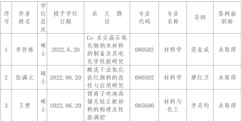 根据湖南省教育厅《关于开展2024年湖南省优秀博士、硕士学位论文评选工作的通知》(湘教通〔2024〕97号)和《关于开展2024年437必赢会员中心优秀博士、硕士学位论文评选和湖南省优秀学位论文推荐工作的通知》精神,经学生自愿申请,学院学位评定分委员会进行评审并表决,拟推荐李世栋等三位同学的硕士学位论文参评2024年437必赢会员中心校级优秀硕士学位论文。