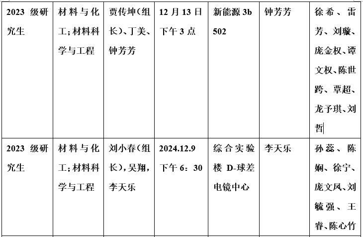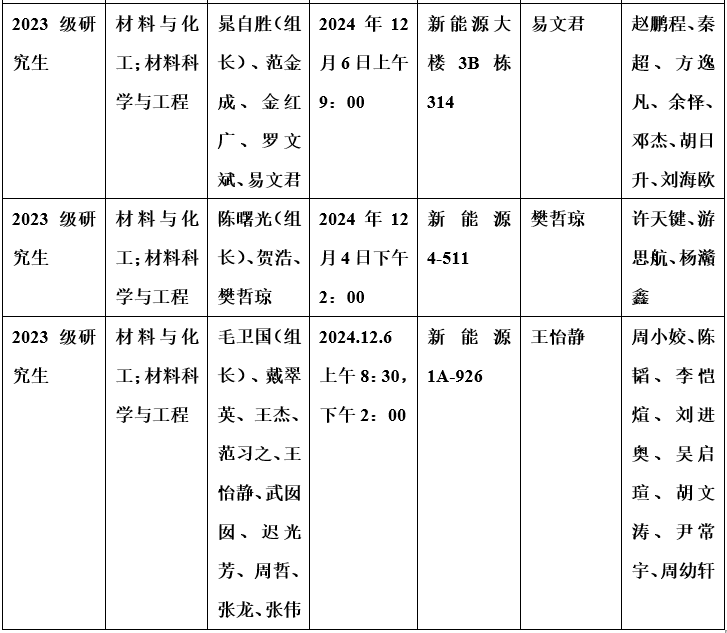 材料科学与工程学院研究生学位论文中期检查安排表(三)