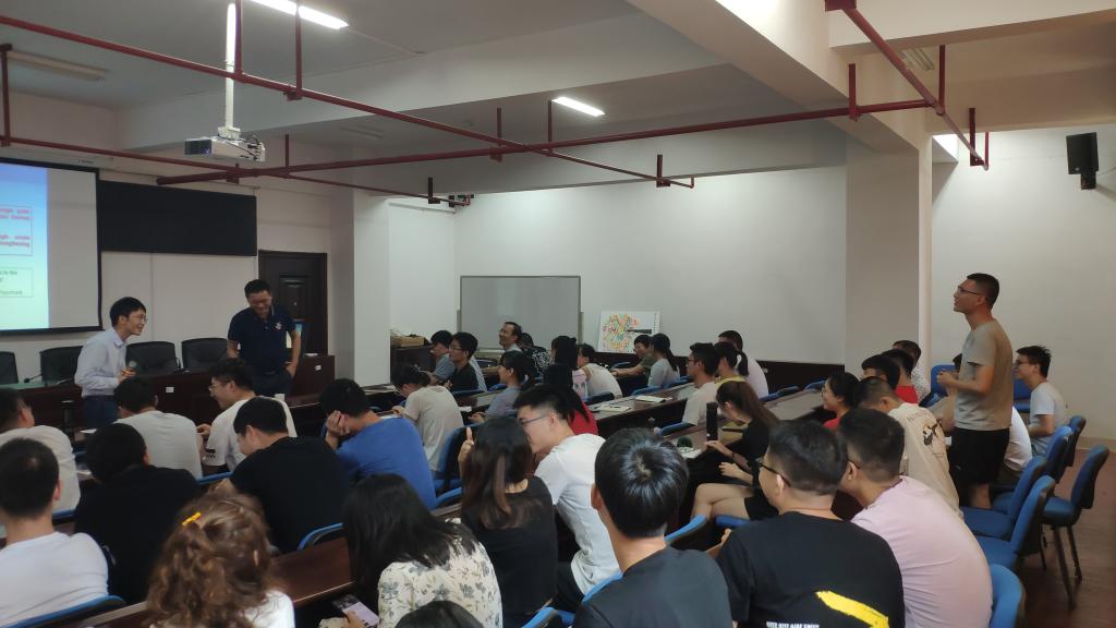 刘小春博士是材料学领域知名专家,其相关研究成果发表在ScienceActa MaterialiaScripta Materialia等国际期刊上。刘博士介绍了自己的研究成果,通过可控制备纳米尺度低能界面,突破金属材料的晶粒细化极限,在更大的“结构尺寸-性能”窗口探索材料科学中的新问题、新现象与新机制。他提出两个观点:一是基于小角晶界的Taylor位错强化机制与本征低能界面属性,提出了利用纳米尺度小角晶界强化材料,提高材料结构稳定性的观点。这一观点在金属Ni中被验证,打破了“强度-热稳定性”倒置关系。二是在合金材料中,首次在极低温条件下发现变形诱导溶质原子偏聚的现象。并提出“塑性变形可以作为一种手段,有效地调控溶质原子再分布”的观点。他由浅入深让学生们基于这两个观点,在铝合金中实现了溶质原子多级偏聚与晶界耦合强化,在纳米尺度设计高性能合金材料提供了新的视角有了更加深刻的了解,受益匪浅。