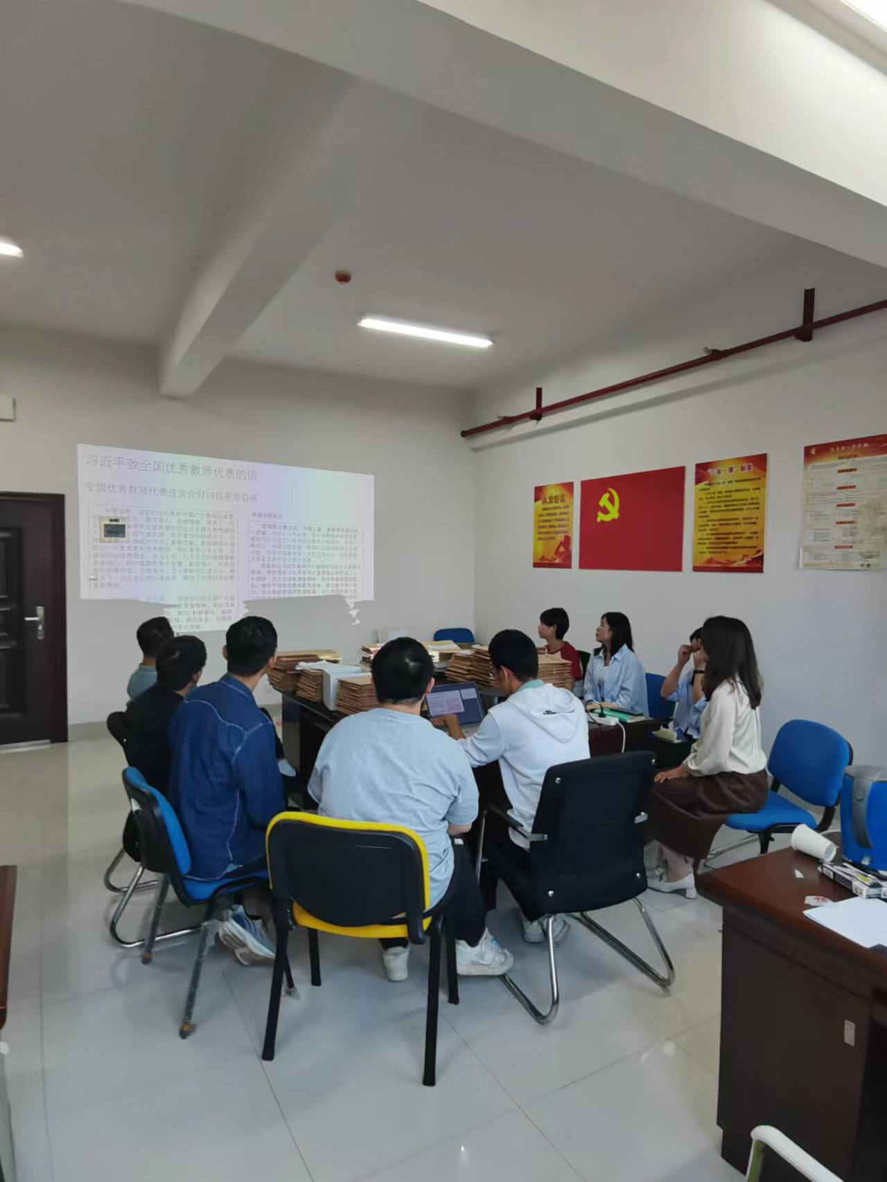 其后,支部书记秦伟带领大家共同学习了习近平总书记致全国优秀教师代表的信以及在东北大学建校百年之际给东北大学师生的回信。大家一致表示,作为一名高校教师,一定要认真学习落实习近平总书记相关致信回信件精神,以优秀教师为榜样,牢记为党育人、为国育才的初心使命,树立“躬耕教坛、强国有我”的志向和抱负,为强国建设、民族复兴伟业作出新的更大贡献。