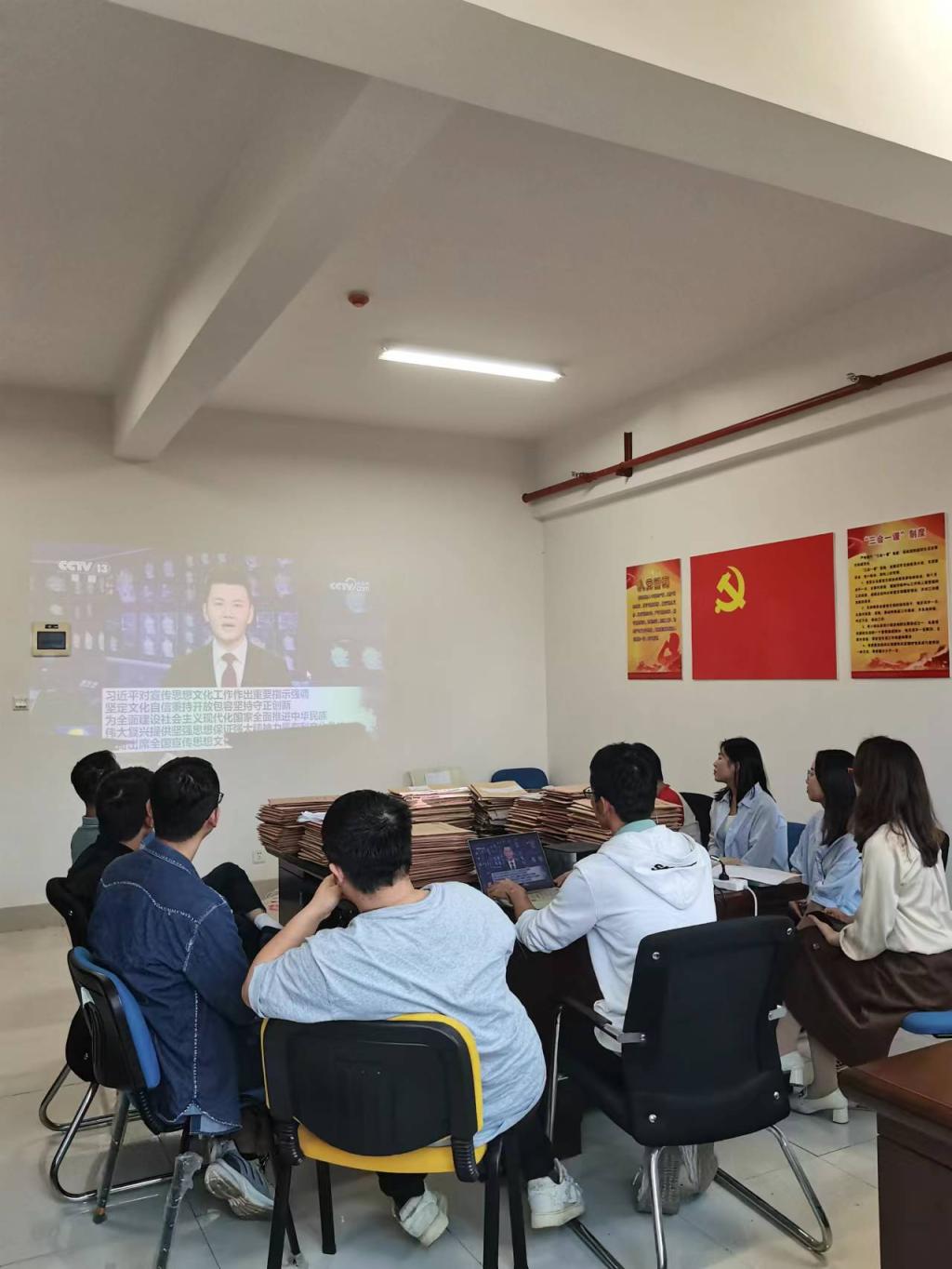 其后,大家继续学习了10月7-8日全国宣传思想文化工作会议上传达的习近平总书记关于宣传思想文化工作的重要指示。习近平总书记强调,宣传思想文化工作事关党的前途命运,事关国家长治久安,事关民族凝聚力和向心力,是一项极端重要的工作。为了进一步加强学习效果,支部党员共同观看了中央电视台中相关节目视频。