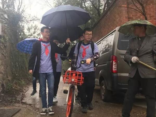 下午15时,双方志愿者准时于南郊公园会合,经过简单的分工,活动正式开始。由于天空下着细雨,志愿者们两人分为一组,沿着南二环路,一人打伞,一人将共享单车摆放到正确的区域。在活动过程中志愿者们发现,部分共享单车并没有受到应有的爱护,杂乱倒在地上,车形受到损坏,甚至出现了共享单车被上私锁的现象。志愿者们分工合作,将共享单车扶起,并摆放到合适的位置。