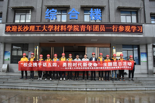 4月29日,材料学院与中建西部公司联合开展了“校企携手话五四,勇担时代新使命”主题团日活动,本次活动由院团委书记陈鑫林带队,15名青年团员代表以及中建西部建设湖南有限公司团员代表参加。