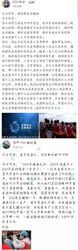 三月正值雷锋月,为弘扬雷锋精神,材料学院开展了以“弘扬雷锋精神,助力疫情攻坚”为主题的线上打卡活动。活动以疫情期间的案例为教育素材,促进学生主动思考,深化对雷锋精神的认识。