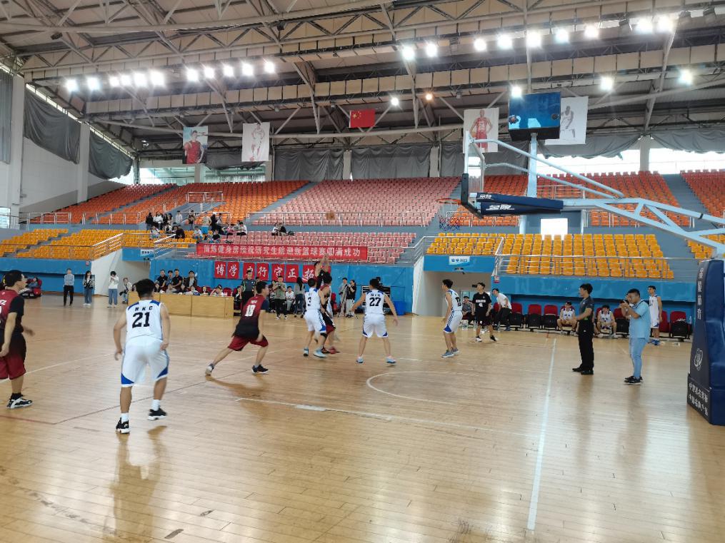 下午三点第二场比赛,是我院研究生对阵物电学院研究生队的比赛,随着哨声响起,第一节比赛开始。物电学院率先进球,并发挥稳定,连得6分。随后我院状态逐渐上来,进行了分秒必争的进攻,24号符昊同学以两个远投三分追回比分,至第一节比赛结束,物电队以16:14暂时领先材料队。第二节比赛,物电4号宋一言陀螺转身上篮,我院也针锋相对,7号吴文泽欧洲步完成一个漂亮上篮动作,材料学院紧咬比分。