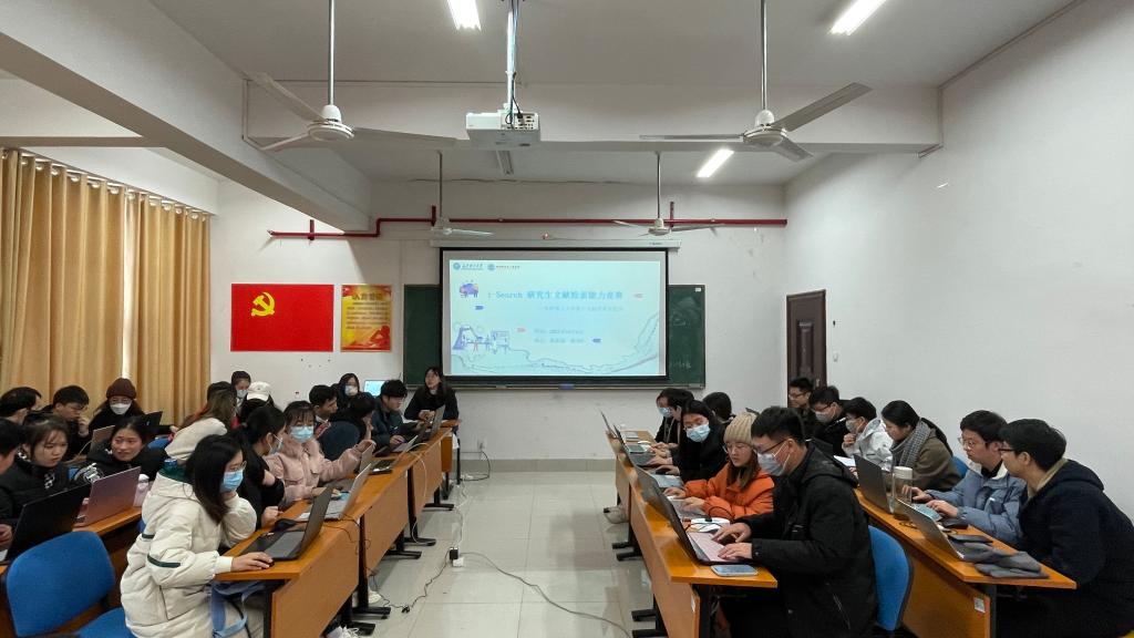 12月6日,材料学院于新能源一号楼303教室召开“i-Search”研究生文献检索能力竞赛。研究生导师张怡琼、樊哲琼担任比赛评委现场指导,比赛由研会干部王碧霞主持,33名研究生参加比赛,每组三人共11组。