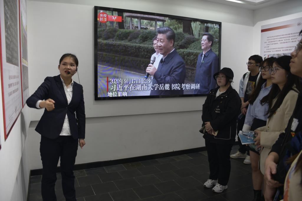 活动第二项,重走习近平总书记在湖南大学岳麓书院考察时的调研路线。2020年9月17日,习近平总书记在考察岳麓书院时,发表了岳麓书院是党的实事求是思想路线策源地的重要论述。沿着总书记的足迹,党员们一同参观岳麓书院,听讲解员讲述毛泽东主席寄住岳麓书院时的求学故事和思想历程,再次重温和感悟实事求是精神。在参观途中,党员同志们表示定要不忘初心、牢记使命,勤学苦练、增强本领,努力成为可堪大用,能担重任的栋梁之才。