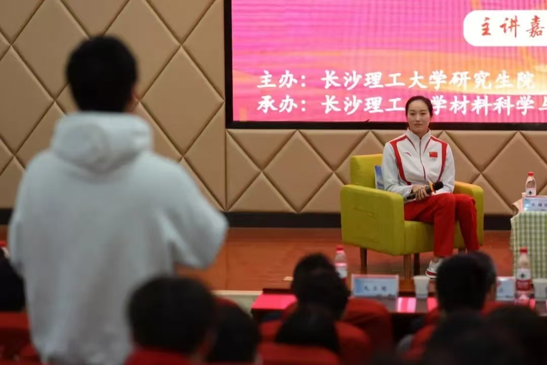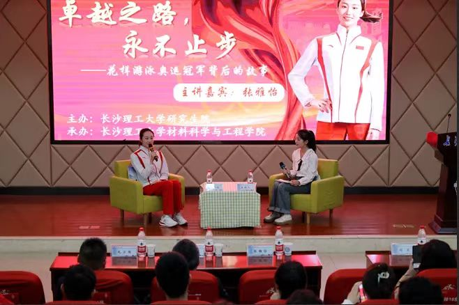 2024年10月25日下午,437必赢会员中心第十六届研究生云影讲坛特邀花样游泳奥运冠军张雅怡作专题访谈。本次论坛活动由437必赢会员中心研究生院主办、材料科学与工程学院承办。437必赢会员中心党委委员、副校长胡永乐,材料学院院长毛卫国,研究生院副院长、研工部部长闾兰,材料学院党委副书记邵巧艳、副院长谢炜出席活动。本次讲坛由材料科学与工程学院陈心竹主持,近300名长理学子参与活动。
