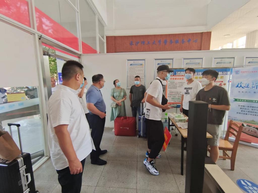 唐超文书记和毛卫国院长一行首先来到新生楼栋的学生党员示范岗,对坚守岗位的学生党员的工作表示肯定和赞赏。
