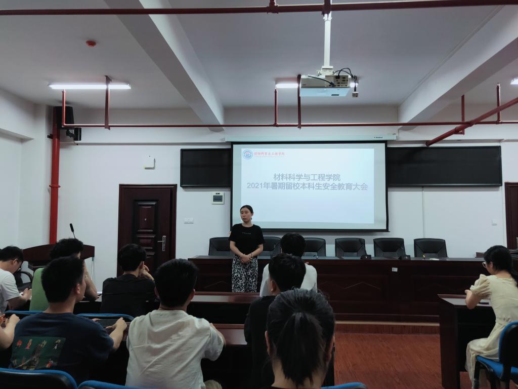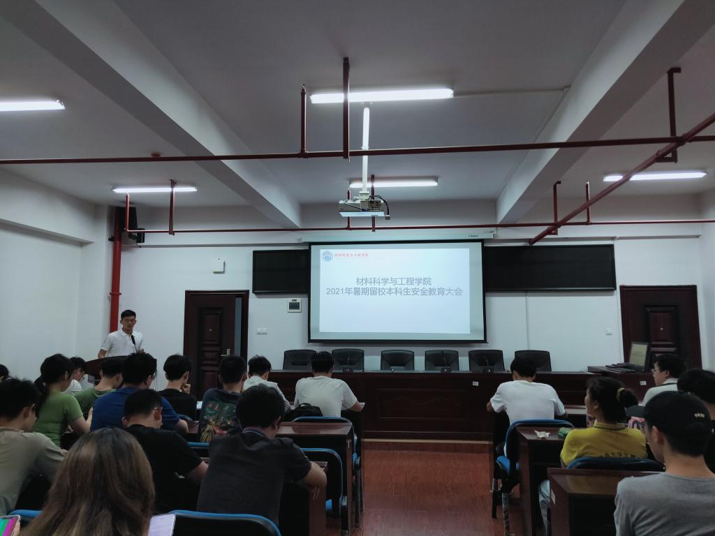 7月14日晚,材料学院于新能源一栋302室召开2021年暑期留校本科生安全教育大会。会议由18级辅导员王志亮主持,学院党总支副书记陈华以及全体留校本科生参会。