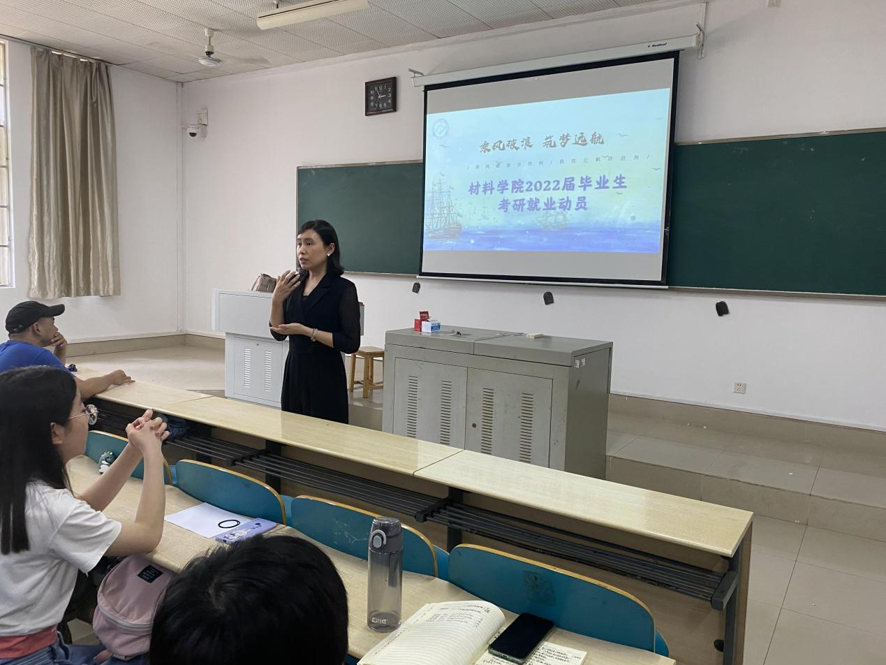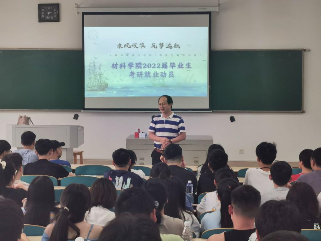 9月9日下午14时30分,材料学院云塘校区综合教学楼A103召开2022届毕业生考研就业动员大会,材料学院分管研究生副院长杨现锋、党总支副书记陈华、年级辅导谢易真、21届优秀研究生代表2022届全体毕业生参会。
