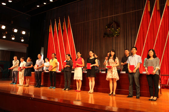 7月1日上午,必赢官网在云塘校区大会堂召开庆祝建党95周年暨“七一”表彰大会。学校党委班子成员,全校科职以上党员干部,各基层党支部书记,受表彰的优秀个人,以及各学院党员师生代表、校机关全体党员参加了大会。大会由校党委副书记邹宏如主持。