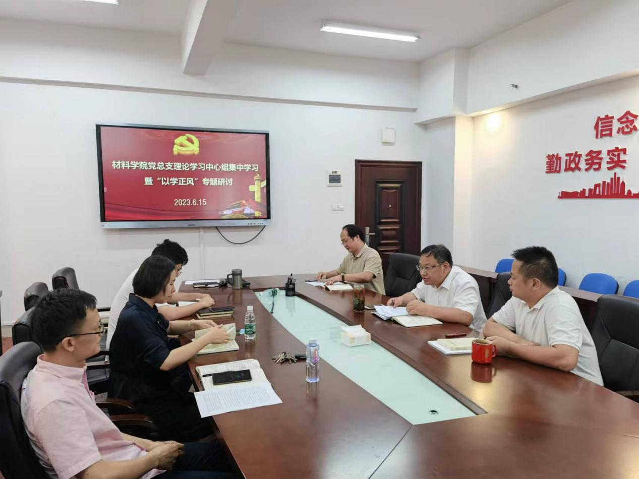 6月15日下午,材料学院党总支理论学习中心组在新能源1#楼317会议室组织集中学习,并就主题教育“以学正风”进行了专题研讨,学院党总支书记唐超文主持学习,全体中心组成员参加。