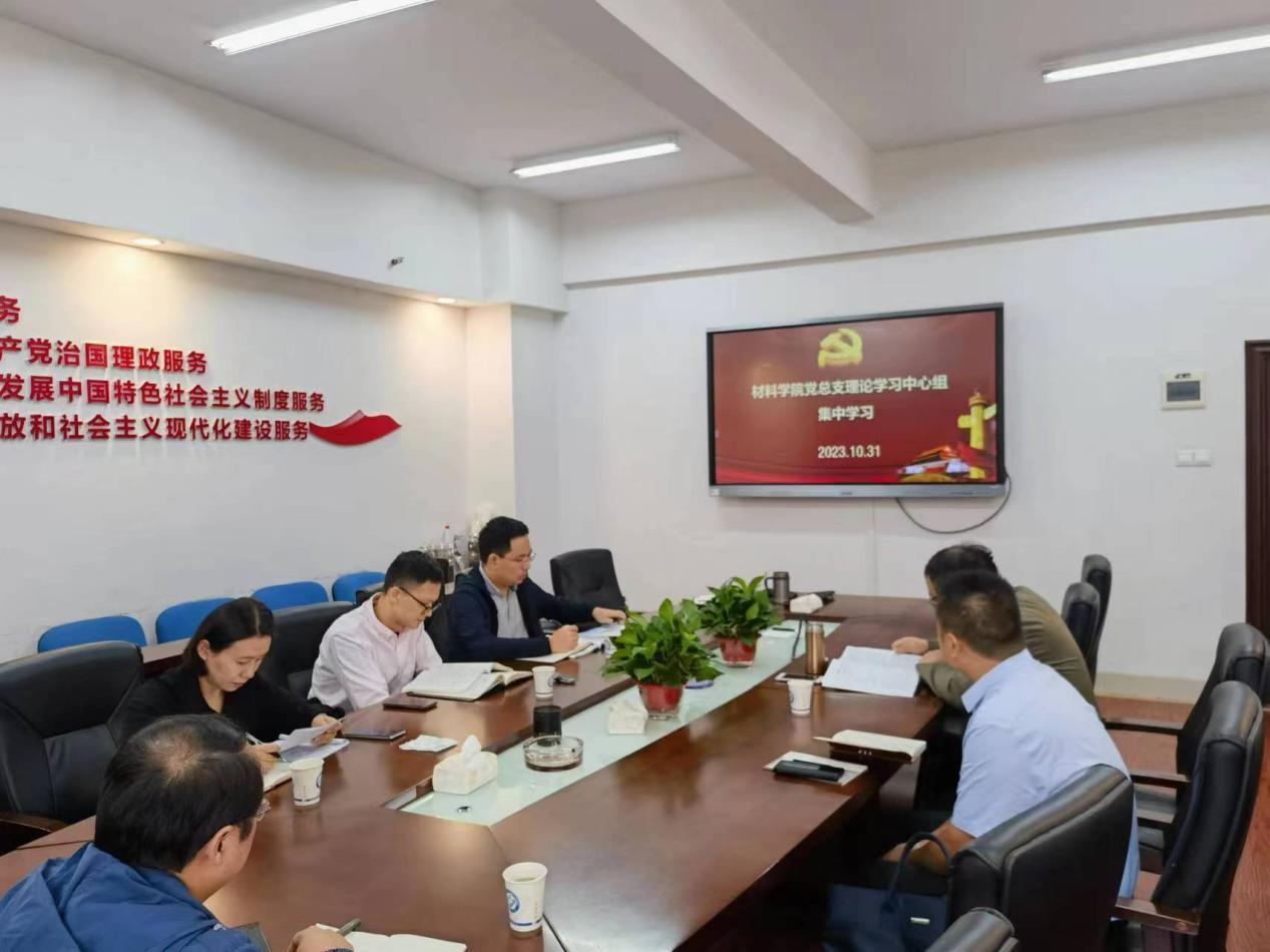 2023年10月31日上午,材料科学与工程学院党总支理论学习中心组在新能源大楼1-317举行集中学习,学习内容包括:习近平总书记在同中华全国总工会新一届领导班子成员集体谈话时的重要讲话精神;习近平总书记在中共中央政治局第九次集体学习时的重要讲话精神;10月30日全省高校“以学谋私”问题专项整治工作推进会会议精神;本科教育教学审核评估《自评报告》等。学习由院党总支书记唐超文主持,院理论学习中心组全体成员参加。