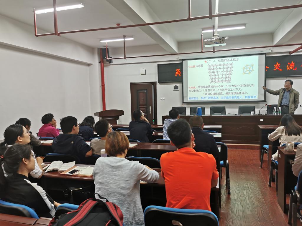 吴教授还与在场的青年教师进行了教学经验交流,并无私分享了几十年从事《物理化学》、《固体物理》、《材料科学基础》等教学所积攒的心得体会,并深有感慨地表示,一辈子热爱教学,努力将教学工作做到极致。临近退休,他最离不开的就是学生和对于教学的思考,非常愿意将自己毕生的教学成果和经验与相关课程的年轻教师们分享,因此一直在全国各高校进行教学经验交流。吴教授也鼓励青年教师正确处理好教学与科研的关系,教学中应结合课程特点加强教学法和教学艺术的研究,不断提高教学质量。交流会轻松、热烈,与会教师积极与吴教授交流探讨教学中遇到的问题和困惑,通过此次交流进一步激发了学院青年教师的教学热情。