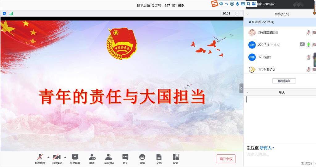5月12日18时,材料学院分党校依托“腾讯会议”网络平台组织第35期入党积极分子培训班第一次讨论课。本次讨论课主题是“青年责任与大国担当”.分党校工作组选定了三则学习资料,主要内容为“五四精神的当代价值”、“习近平:让青春在党和人民最需要的地方绽放绚丽之花”、“战‘疫’说理疫情大考的答卷彰显‘中国之治’”。培训班全体学员参与线上讨论,支部党员参与指导。