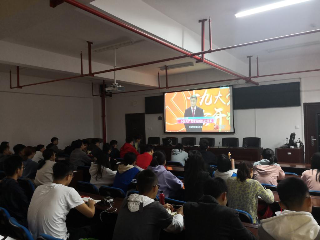 11月16日晚,材料学院分党校在新能源一号楼303组织本学期预备党员、发展对象及入党积极分子培训班学员开展新党章学习网络课程,本次学习选取的是由中央党校校委委员谢春涛教授主讲《十九大党章公开课》,分党校全体学员参加。