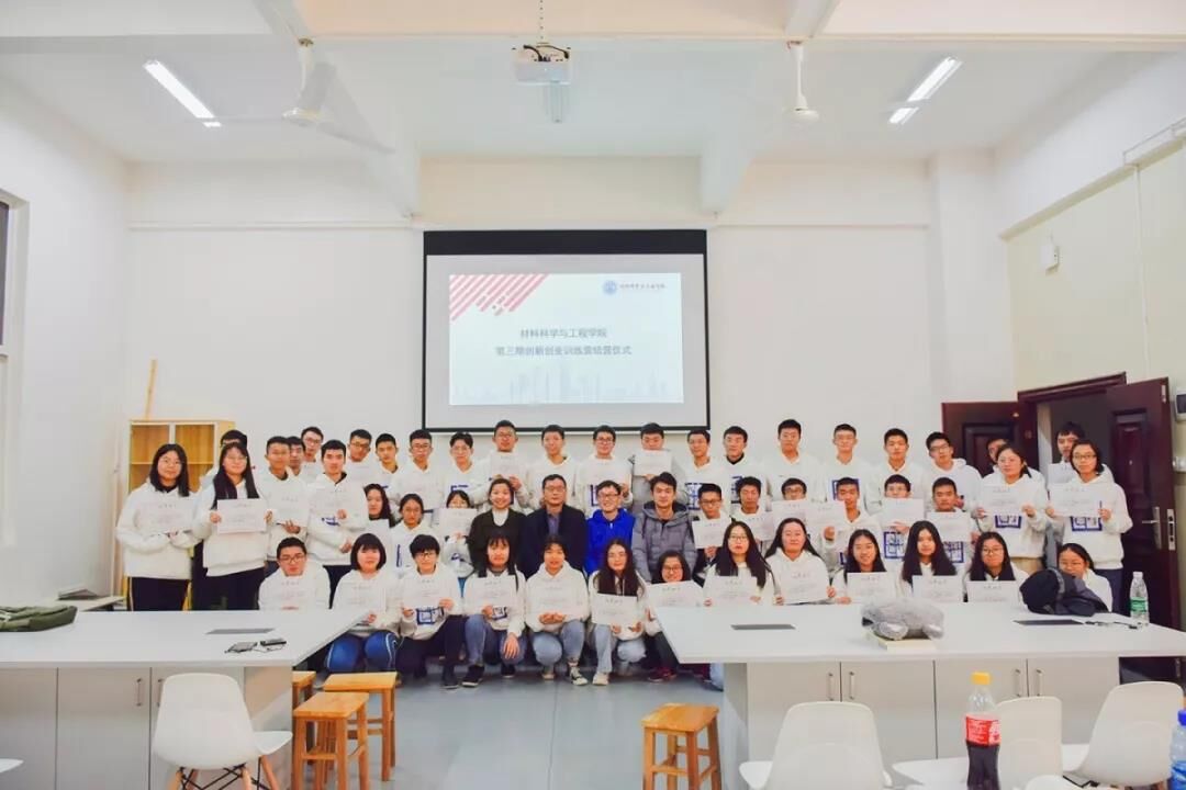 12月30日,材料学院于新能源3号楼107举办第三期创新创业训练营结营仪式。院党总支书记张国强、副书记唐青、副院长陈曙光、创新创业办公室主任贺浩、副主任陈鑫林出席本次仪式,训练营全体成员参加。