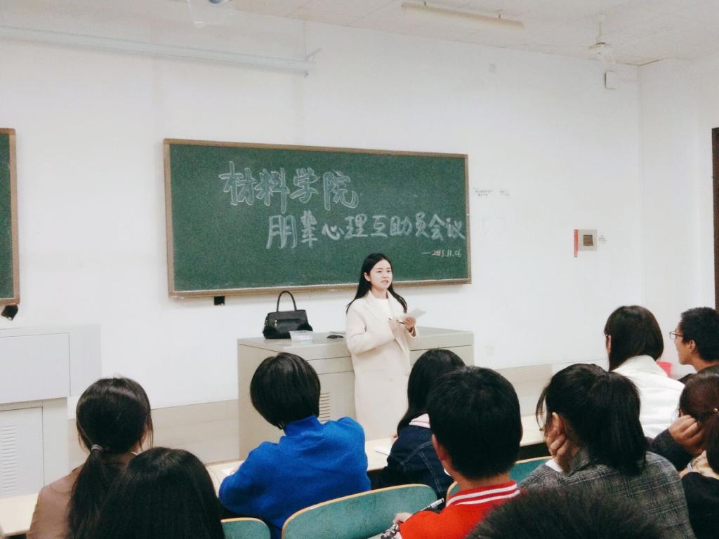 11月6日晚上八点,材料学院于综合教学楼B401教室召开了18级朋辈心理互助员会议,学院心理辅导员谢易真、团学会心理部、18级各班心理委员以及朋辈心理互助员参与了本次会议。