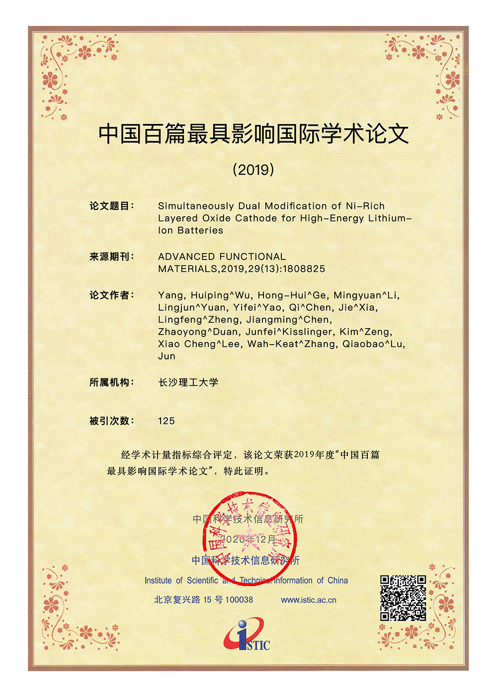 College of Materials Science and Engineering / Changsha University Of Science & Technology