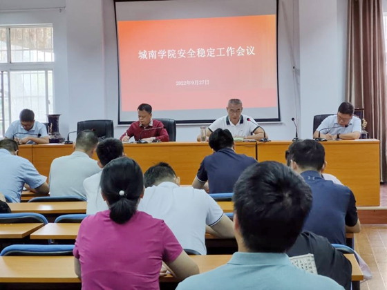 9月27日,城南学院在金盆岭2教201召开安全工作会议,全院科级及以上干部、各部门负责人参加。副院长靳攀科主持会议。