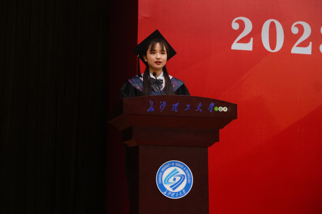 经济管理系金融1901班李晴同学作为毕业生代表发言,她用“传承、坚持、接纳”三个关键词总结了大学四年的感悟和收获,并表示从城南带走的故事将伴随大家度过未来或顺利或坎坷的人生。同学们定将时刻铭记博学力行、守正拓新的校训, 怀揣着各自的人生理想奔赴山海,不负母校及老师们寄予的厚望,为国家为社会做出贡献。