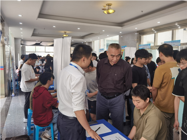 9月27日下午,437必赢会员中心城南学院2024届毕业生秋季双选会在电苑楼一楼大厅举行。学院党委书记李修春、院长赵华等院领导到双选会现场接洽用人单位,了解用人需求和毕业生应聘情况。