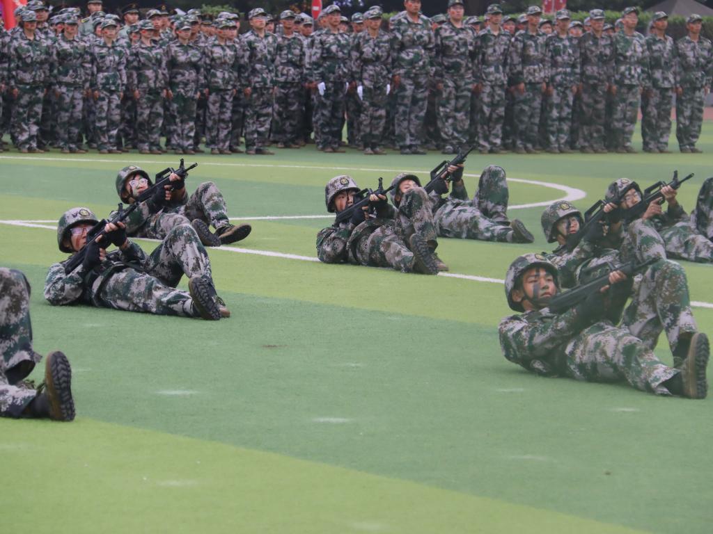 在军训成果汇报中,擒敌拳方队动作敏捷,展示了军训期间的丰硕成果。军体拳、匕首操、战术演练方队依次上场,他们的动作干脆利落、行云流水、气势如虹,方寸之间,将城南学子顽强拼搏、奋勇向前的精神面貌展现得淋漓尽致,赢得了现场观众的阵阵掌声和欢呼声。