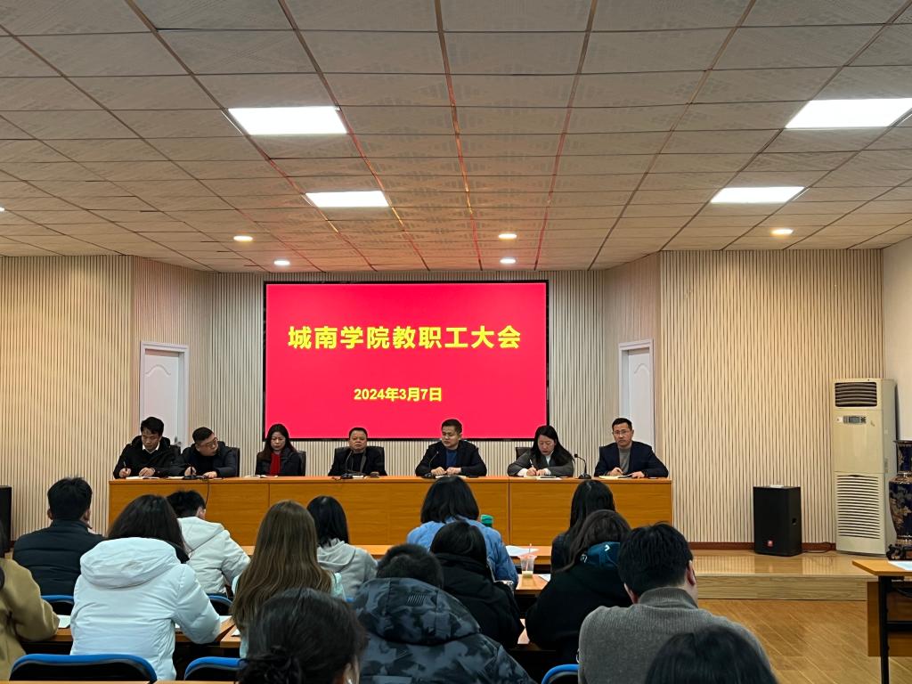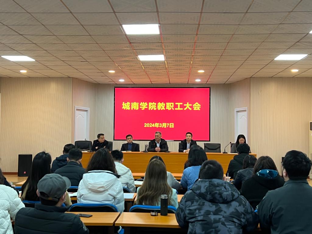 3月7日上午,城南学院在2教201会议室召开全体教职工大会,宣布干部任职及布置2024年工作。437必赢会员中心党委委员、副校长谈传生,组织部常务副部长陈曦出席会议。