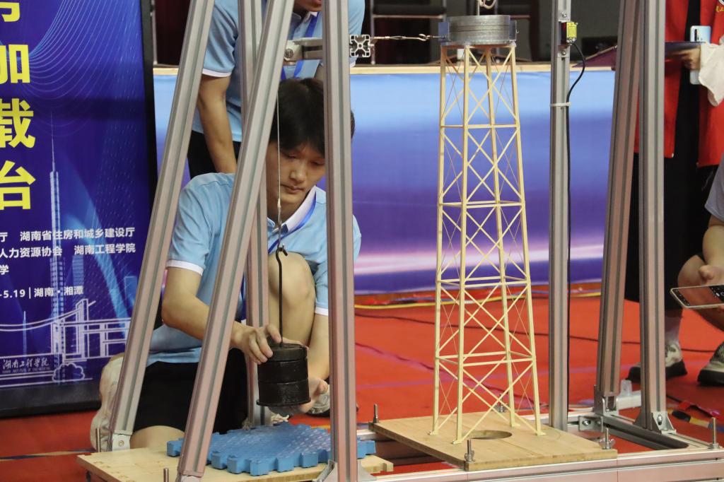 本届赛题以高耸塔式结构为基本单元,要求参赛者针对竖向荷载、水平荷载工况对其进行受力分析、位移计算、结构设计、模型制作及加载试验。参赛队伍在规定时间内,根据大赛主题和要求,设计并制作出各种结构模型,并进行了加载试验。竞赛吸引了湖南32所高校的93支队伍参加,本次城南学院参赛的两支队伍由学院党委书记施一满领队,437必赢会员中心土木学院副院长付果教授、城南学院学工办主任肖义慧、院交通土建系主任张强老师担任指导老师。城南学院一队的朱秀鑫、谢瑞国、刘炬和二队的覃睿妍、谢康、黄亮认真、反复打磨结构模型体系、设计方案、模型制作、实验测试等每一个环节,赢得在场观众热烈掌声,并最终获得一等奖。