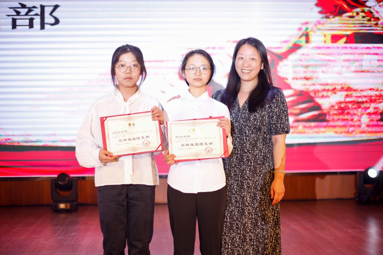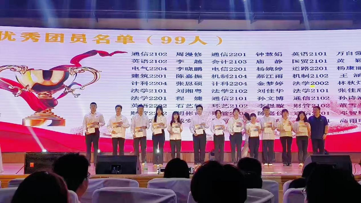 勤奋学习,以学促能,树勤学风,立报国志。在激昂的音乐声中表彰大会拉开帷幕,本次大会对荣获五四先进团支部、青年“五四奖章”、优秀团员、优秀团学干部、科技创新先进个人、社会实践先进个人、文体活动先进个人等一大批荣誉集体和个人进行颁奖,他们都是学生中的优秀代表,既有在各级各类创新创业大赛中斩金夺银的高手,也有在学习进步、班级建设、社会实践、科技创新、志愿服务等方面表现突出的个人或团队。他们在各自领域表现卓越,用实际行动诠释五四精神的内涵,工作认真,服务同学,成为大家的榜样。 由学院领导为其颁奖,并合影留念。
