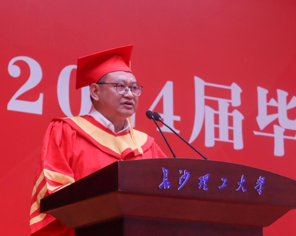 下午2点30分,毕业生们身着学位服,带着激动和喜悦的心情共赴这场青春盛宴,见证属于自己的人生重要时刻。在庄严的国歌声中,毕业典礼正式拉开帷幕。刘朝晖代表学校向圆满完成本科阶段学业的全体毕业生表示热烈的祝贺,向一直以来悉心培育、辛勤养育、关心支持同学们的老师、父母及亲朋挚友致以衷心的感谢和敬意。他希望同学们告别母校,步入新的未来时,一要胸怀祖国人民,确立人生航向;二要勇于砥砺奋斗,实干成就事业;三要淬炼坚韧雄心,铸就未来力量。祝毕业生们携梦想勇敢前行,以青春之姿与时代共进。