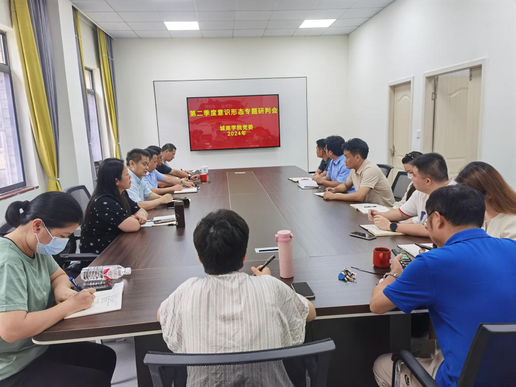 近日,城南学院党委在金盆岭2楼会议室召开2024年第二季度意识形态专题研判会,学院意识形态工作领导小组及意识形态分析研判小组成员参加,院党委书记施一满主持会议。