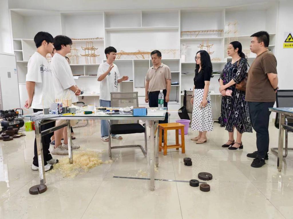 7月27日,城南学院党委书记施一满、城南学院副院长贺晖、刘卓明亲切慰问第十七届全国大学生结构设计竞赛备赛成员。