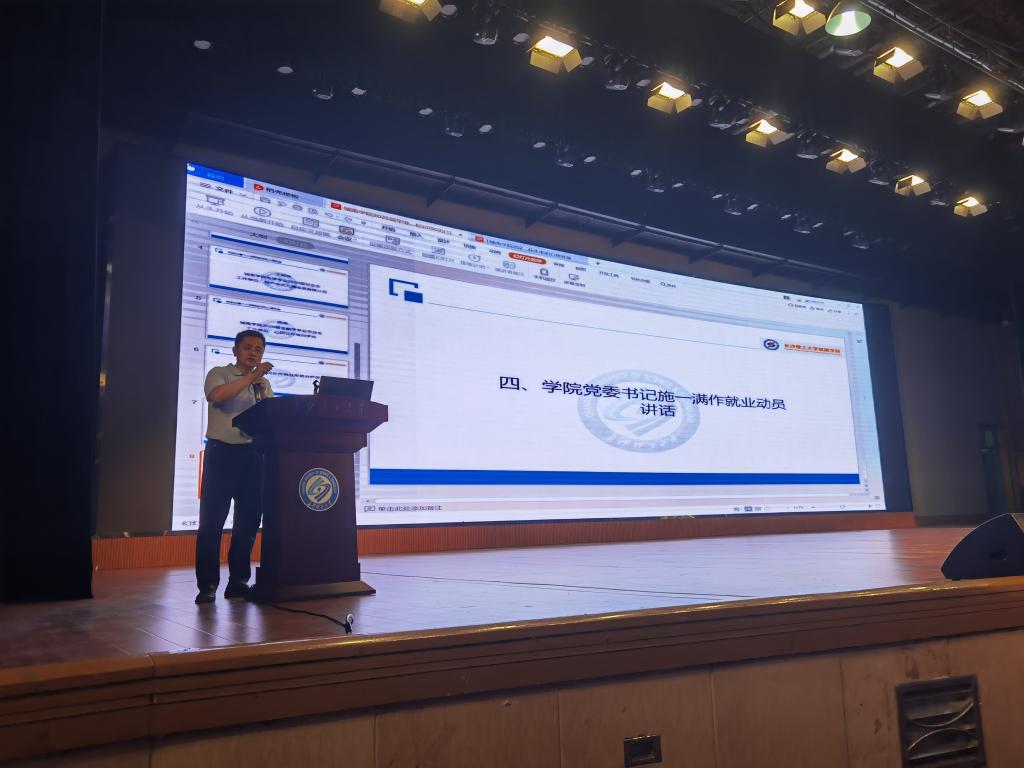 接下来,朱广峰对当下毕业生的就业形势进行了全面分析,指出目前我院毕业生面临的严峻考验以及在求职过程中存在的问题,引用诗句“花堪摘直须摘,莫待无花空折枝”来寄语2025届毕业生,在当前的就业形势下,毕业生需要深刻理解并实践这一智慧。意味着在职业生涯的起跑线上,同学们应当及时调整自己的就业期望,使之更加符合现实与个人长远发展。面对秋季招聘这一关键时期,更是要抢抓机遇,主动出击,而不是犹豫不决,错失良机。