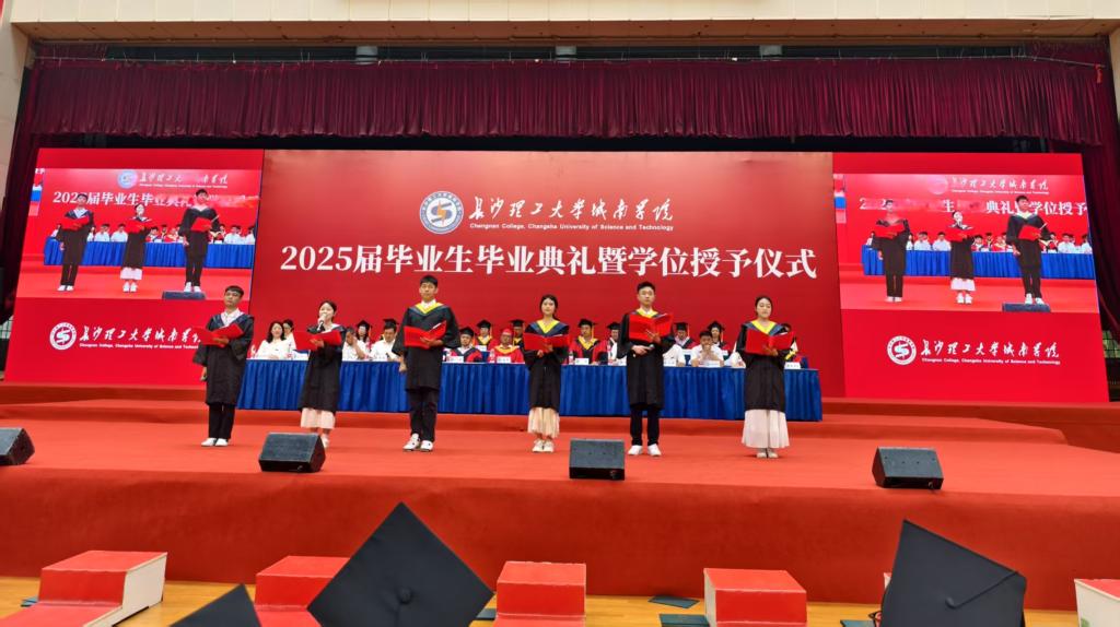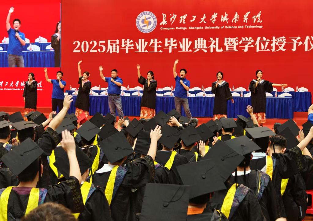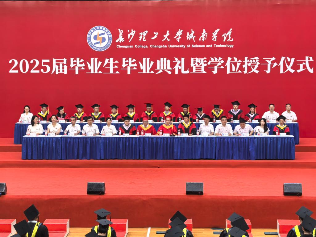 6月20日上午,437必赢会员中心城南学院2025届本科生毕业典礼暨学位授予仪式在金盆岭校区体育馆隆重举行。副校长、城南学院董事长刘朝晖、学校有关职能部门负责人、各培养学院代表、学院领导、教师代表、部分家长及2025届毕业生参加典礼。典礼由副校长张军辉主持。