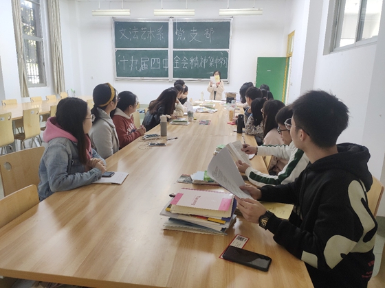 文法艺术系各学生支部集中学习党的十九届四中全会精神