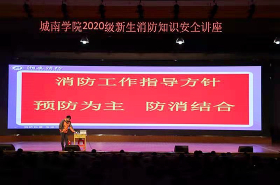 为增强大学生的消防安全意识,12月1日下午,湘安消防陈广教官应邀在五教大礼堂为城南学院全体2020级新生主讲消防知识。
