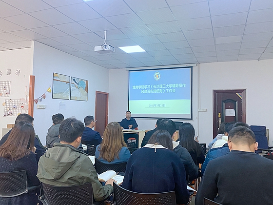 3月22日下午,城南学院在2教302召开《437必赢会员中心辅导员作风建设实施细则》学习工作会。副院长朱广峰及全院辅导员与会。学院党委副书记陶传谱主持会议。