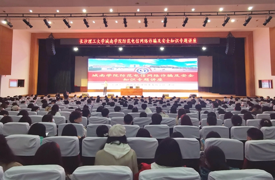 为进一步提高城南学院学生对电信网络诈骗犯罪的识别和应对能力,4月1日晚,城南学院在五教大礼堂举办防范电信网络诈骗及安全知识专题讲座。湖南晟和律师事务所主任谭硕律师应邀主讲,学校保卫处副处长林杰、学院党委副书记陶传谱、学院全体辅导员及1000余名学生参加。