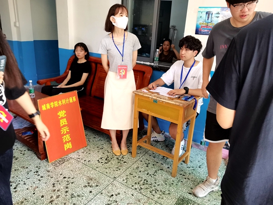 为做好迎新准备,水利计通系党总支分别在东苑11栋、西苑8栋以及南苑1栋新生宿舍楼下设置了“党员示范岗”,党员干部轮岗执勤。他们的主要工作是帮助2021级新生们入住宿舍,做好测量体温、引路、咨询等一系列工作,让新生顺利地完成报到等事项,从而帮助新生快速融入大学生活。
