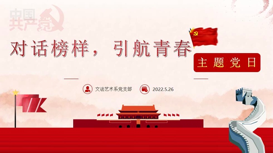为引导广大青年党员学榜样精神,驱动广大党员为中华民族的伟大复兴贡献力量,按照《文法艺术系“青春献礼二十大 强国有我新征程”主题教育活动实施方案》,5月26日晚,文法艺术系通过腾讯会议举办了主题教育系列活动第一期“对话榜样,引航青春”线上主题党日活动。文法艺术系第一学生党支部书记谭怀芝、第二学生党支部书记周心怡以及全体学生党员、各年级学生代表参与活动,活动由视传1903班印雨桐同学主持。