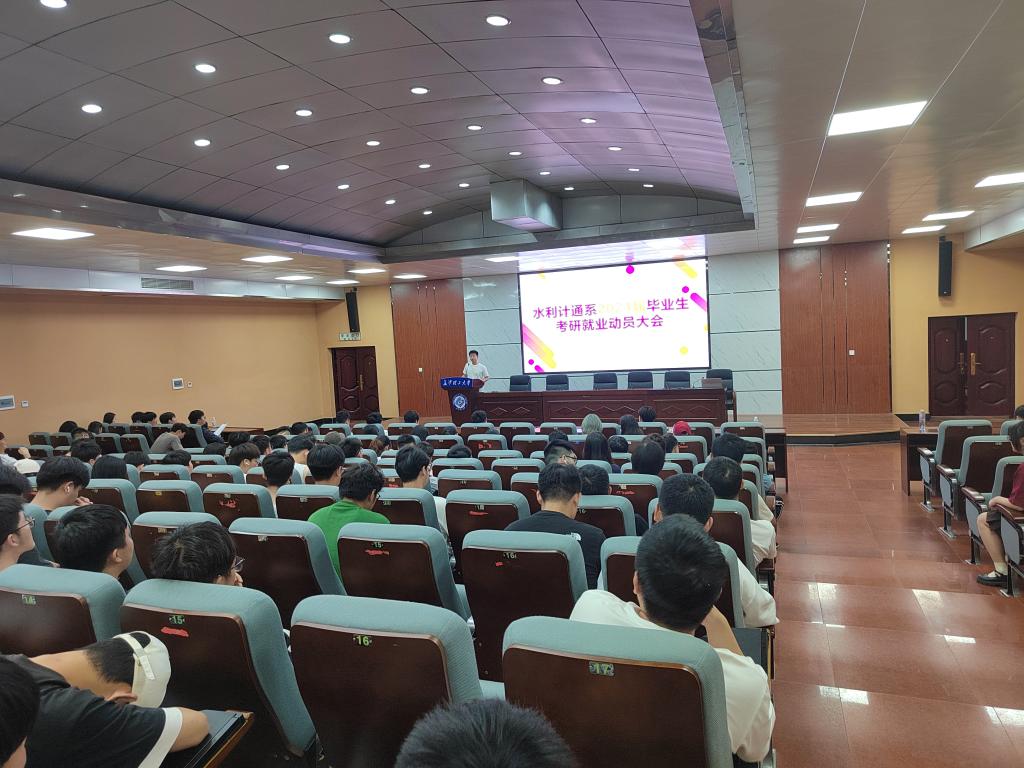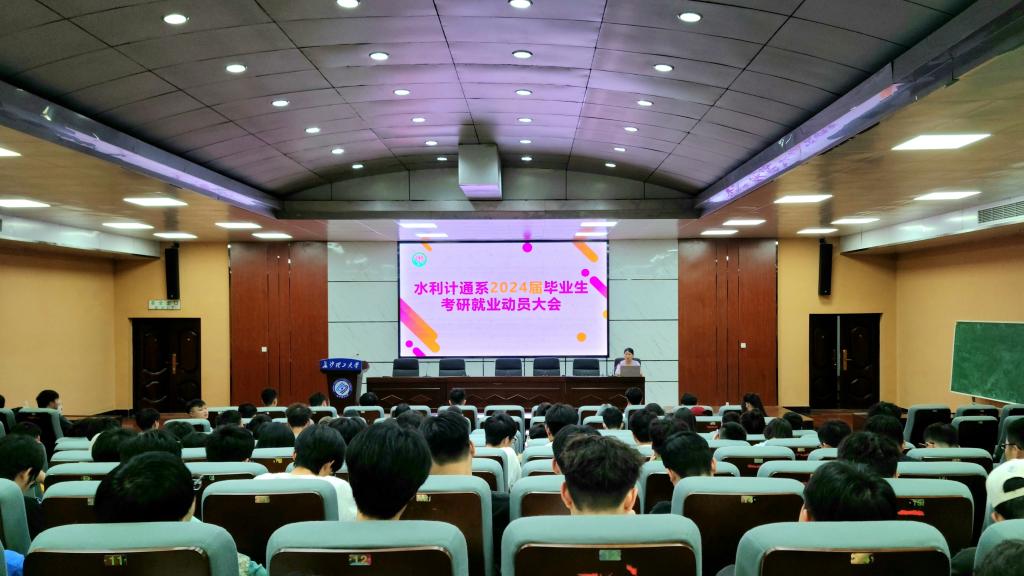为帮助2024届毕业生明确就业方向,树立正确的就业观,充分调动就业积极性,水利计通系于6月7日晚8点在四教报告厅召开了2024届毕业生考研就业动员大会暨考研就业经验交流会。水利计通系学工办主任李琳及2019级辅导员杨志凯,2023届考研就业成功的学生代表以及2024届全体毕业生参会。