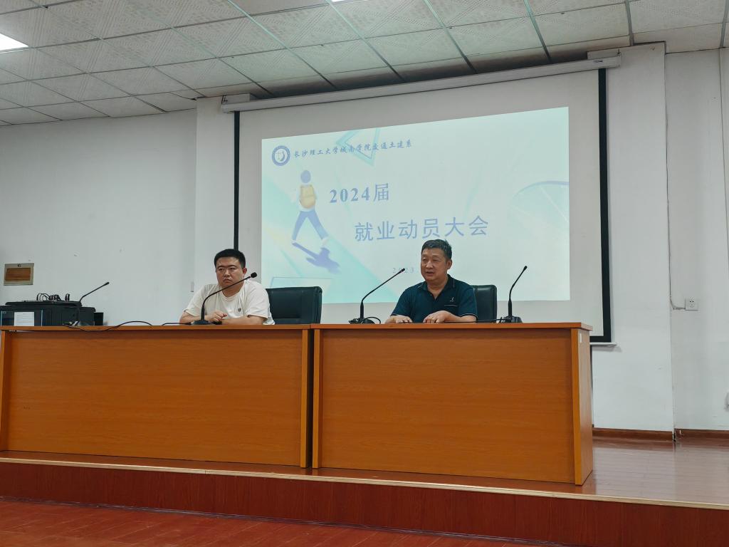 9月6日,交通土建系2024届就业动员大会在二教101、201分别召开。副院长朱广峰、院招就办主任廖瑞虎、系主任张强、年级辅导员熊文洋以及全体2020级学生参加此次会议。