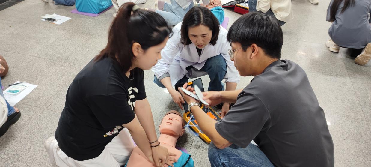 活动中,老师通过案例讲解、示范操作和现场演练的方式,围绕院前急救和常见突发疾病急救知识进行培训。老师详细讲解了心肺复苏常用的胸外按压和人工呼吸的要点操作,教授大家如何抓住急救"黄金四分钟"。
