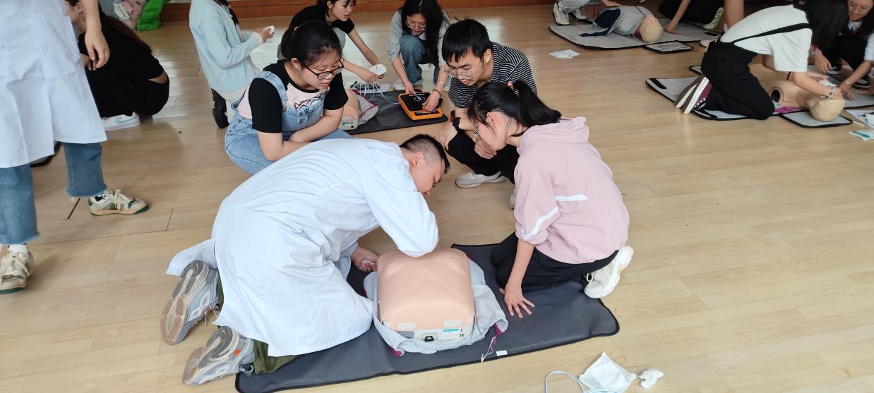 实操过程中老师让同学们进行胸外按压和自动体外除颤器使用演练,边操作边纠正动作。老师与同学们互相交流,分享心得,通过讲解进一步加强了大家在遇到危急情况时的应急能力和自救与互救技能。